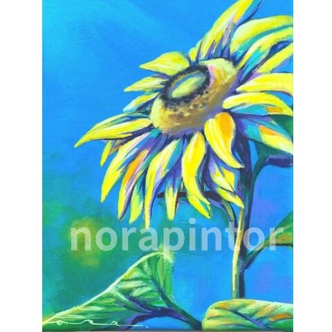 これは、nora流の色の選び方ですが、黄色のひまわりに青系、紫系を使う事で、補色効果が生まれて、メリハリのある絵が出来上がります