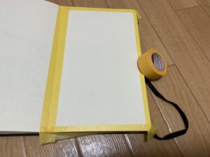 絵を描く紙の端にマスキングテープを貼って紙を固定します。こうする事で紙がヨレて描きにくいなど軽減してくれると思います!