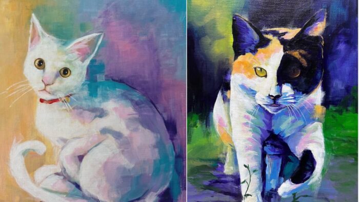 特に迫ってくる猫の絵はヒョウの絵よりも少し柔んだ感じがしませんか?