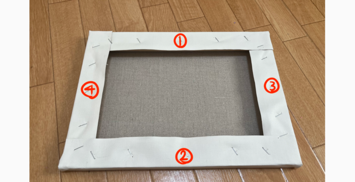 横張り キャンバスを木枠に張る際、側面で留める方法