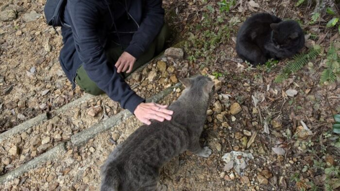 猫ちゃんがお出迎えをしてくれます(途中、猪の足跡があったのでビビりますが…)