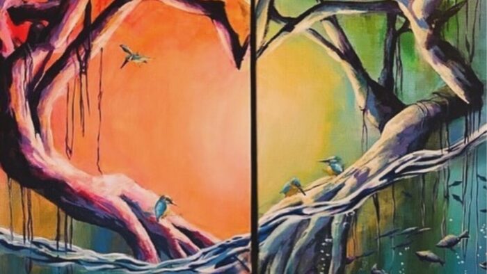 他にも暗い背景に鳥を一羽描いた場合も一緒です